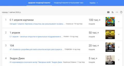 Сьогодні, 1 квітня, українці найбільше шукали у пошуковику Google інформацію про те, що 1 квітня в усьому світі відзначають День сміху або День дурня. Свято не є офіційним, однак воно доволі веселе. Цього дня прийнято розігрувати рідних, друзів і просто знайомих, або жартувати над ними.
