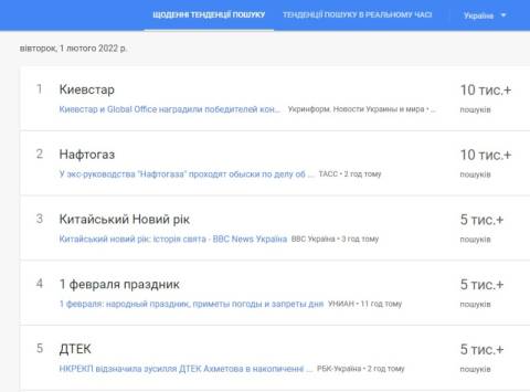 Сьогодні, 1 лютого, українці найбільше шукали у пошуковику Google інформацію про те, що оператор мобільного зв’язку Київстар, послугами якого користуються понад 26 млн українців, розбудовує мережі 4G уздовж 29 автодоріг міжнародного значення, що забезпечить якісне покриття понад 8,5 тисяч кілометрів шляхів.