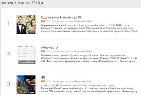 Сьогодні, 1 лютого, українці найбільше шукали у пошуковику Google, що найбільші українські оператори мобільного зв’язку отримали частоти для запровадження швидкісного зв’язку 4G.