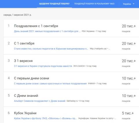 Сьогодні, 1 вересня, українці найбільше шукали у пошуковику Google інформацію про те, що в перший день осені в Україні традиційно відзначають День знань і початок нового навчального року.