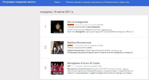 Окрім цього найбільше зацікавила українців новина про те, що пошуковий гігант Google представив дудл, присвячений 80-річчю з дня народження поетеси Белли Ахмадуліної.