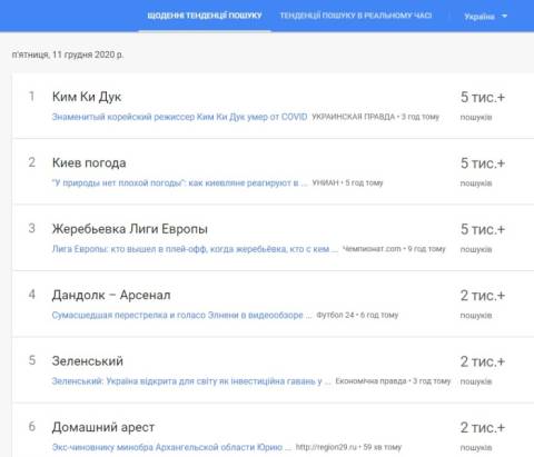 Сьогодні, 11 грудня, українці найбільше шукали у пошуковику Google інформацію про те, що відомий корейський режисер Кім Кі Дук помер в Латвії від коронавірусу.