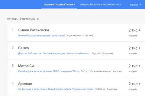 Сьогодні, 12 березня, українці найбільше шукали у пошуковику Google інформацію про те, що вчора СБУ та податкова проводили масштабну спецоперацію на об'єктах мережі автозаправок Glusco, яку пов'язують з Віктором Медведчуком.