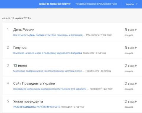 Також українці цікавилися тим, що цього дня під час ходи на підтримку журналіста Івана Голунова у Москві російські правоохоронці затримали більше 200 осіб. Протестувальники вийшли на акцію в футболках "Я/Ми Іван Голунов".