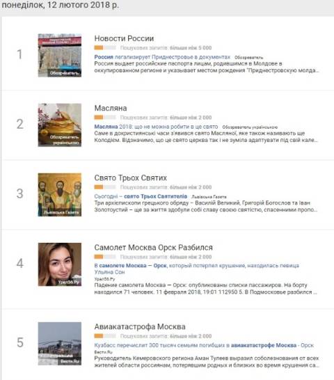 Сьогодні, 12 лютого, українці найбільше шукали у пошуковику Google інформацію, що Росія видає російські паспорти особам, які народилися в Молдові в окупованому регіоні і вказує місцем народження "Придністровську молдавську республіку".