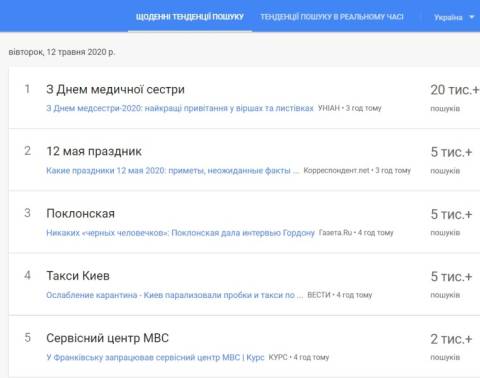Сьогодні, 12 травня, українці найбільше шукали у пошуковику Google інформацію про те, що цього дня в Україні та в усьому світі відзначають Міжнародний день медичної сестри.