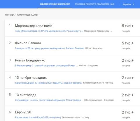Сьогодні, 13 листопада, українці найбільше шукали у пошуковику Google інформацію про те, що у мережу стався витік спільного треку американського репера Lil Pump і російського репера Моргенштерна.