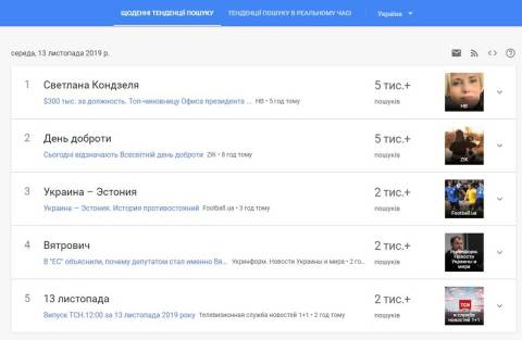 Сьогодні, 13 листопада, українці найбільше шукали у пошуковику Google інформацію про те, що одну із працівниць Офісу президента затримали за підозрою у хабарництві, ъї спіймали "на гарячому".