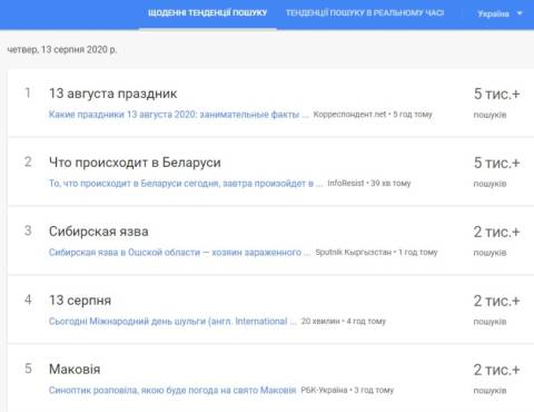Також українці цікавилися, що станом на ранок 13 серпня у Білорусі затримали 3 українців. Президент України Володимир Зеленський закликав українців утриматися від поїздок до Білорусі, де 5 добу тривають протести проти попередніх результатів президентських виборів.