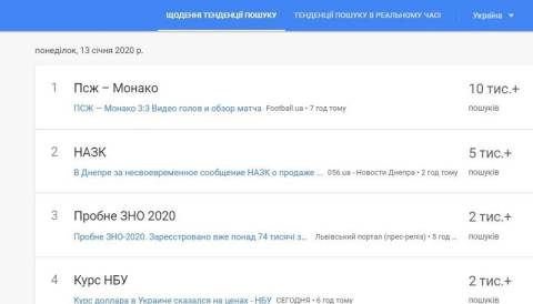 Сьогодні, 13 січня, українці найбільше шукали у пошуковику Google інформацію про те, що на пробне ЗНО-2020 зареєструвалися більше 70 тисяч учасників.