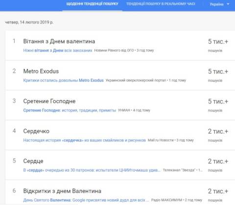 Також українці цікавилися тим, що сьогодні закохані пари святкують День Святого Валентина.
