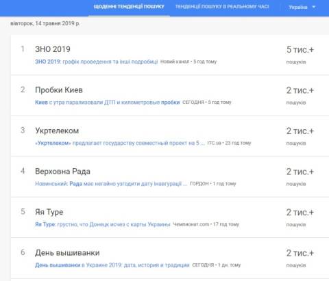 Сьогодні, 14 травня, українці найбільше шукали у пошуковику Google інформацію, що для участі в ЗНО цього року зареєстрували 354 тисяч абітуєнтів, з них 25 тисяч – мешканці Львівщини.