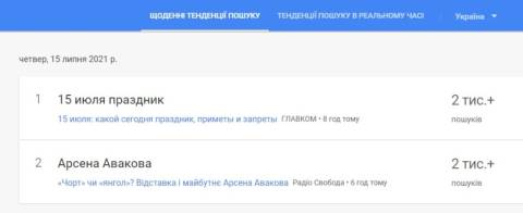 Сьогодні, 15 липня, українці найбільше шукали у пошуковику Google інформацію про те, що цього дня Верховна Рада звільнила міністра внутрішніх справ Арсена Авакова. Цю посаду він обіймав 7 років – з 27 лютого 2014 року.
