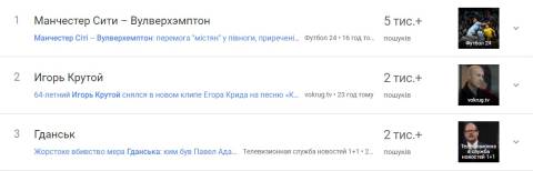 Сьогодні, 15 січня, українці найбільше шукали у пошуковику Google інформацію, що Манчестер Сіті завдяки дублю Габріела Жезуса та автоголу Конора Коуді оформив розгромну перемогу над Вулверхемптоном в рамках 22-го туру АПЛ.