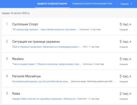 Сьогодні, 16 лютого, українці найбільше шукали у пошуковику Google інформацію про те, що Україна здобула першу медаль на зимовій Олімпіаді у Пекіні.