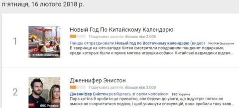 Сьогодні, 16 лютого, українці найбільше шукали у пошуковику Google інформацію, що цього дня святкують китайський або східний Новий рік. Згідно з китайським літочисленням, цьгоріч настав 4716 рік, рік жовтого земляного Собаки.