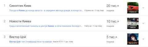 Також українці шукали інформацію, що в столиці пройшла злива з градом. Негода затопила тунель поблизу станції метро "Дорогожичі".