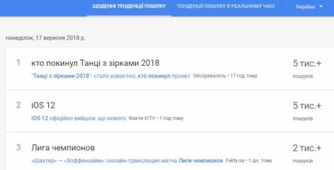 Сьогодні, 17 вересня, українці найбільше шукали у пошуковику Google інформацію, що цього дня офіційно вийшла нова версія мобільної операційної системи Apple для iPhone та iPad – iOS 12.