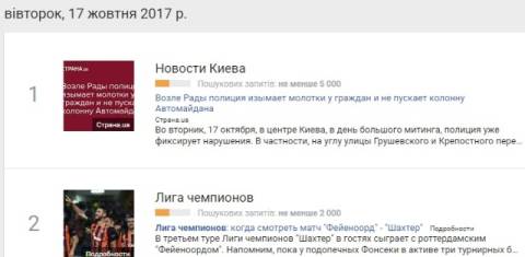 Окрім цього українці цікавилися новиною про те, що сьогодні ввечері у третьому турі Ліги чемпіонів "Шахтар" зустрінеться з роттердамським футбольним клубом "Фейеноод". Українські футболісти гратимуть на виїзді, наразі команда посідає третє місце в групі.