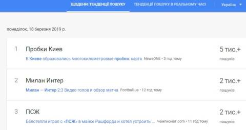 Сьогодні, 18 березня, українці найбільше шукали у пошуковику Google інформацію, що у матчі чемпіонату Італії з футболу ФК "Мілан" програв ФК "Інтер" з рахунком 3:2, відтак ФК "Інтер" піднялася на третю сходинку турнірної таблиці.