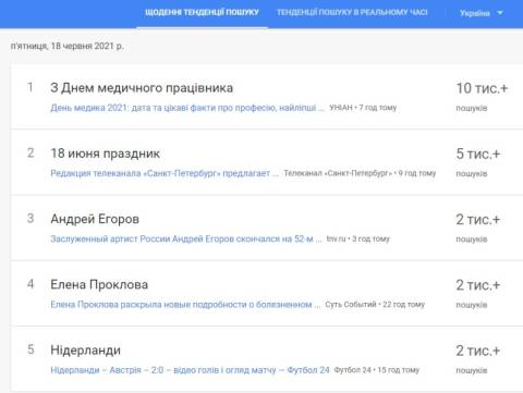 Сьогодні, 18 червня, українці найбільше шукали у пошуковику Google інформацію про те, що у третю неділю червня в Україні святкують День медичного працівника.