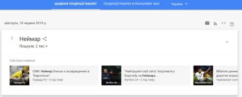 Сьогодні, 18 червня, українці найбільше шукали у пошуковику Google інформацію, що нападник ПСЖ та збірної Бразилії Неймар став жертвою жарту від бразильського Ібіса на тлі трансферних чуток.