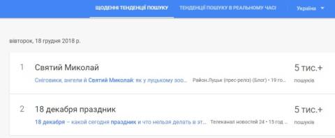 Сьогодні, 18 грудня, українці найбільше шукали у пошуковику Google інформацію, що завтра відзначають День Святого Миколая.