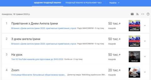 Сьогодні, 18 травня, українці найбільше шукали у пошуковику Google інформацію про те, що 18 травня – день ангела Ірини.