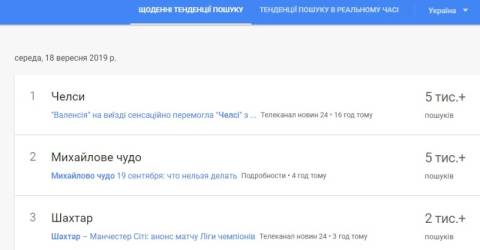 Також українці цікавилися, тим, що у вівторок, 17 вересня англійський футбольний клуб Челсі приймав іспанську Валенсію в рамках групового раунду Ліги чемпіонів. Матч завершився перемогою іспанського клубу з рахунком 0:1.