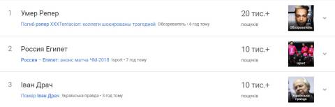Пошук гуглу переповнився запитами про смерть американського репера XXXTentacion та українського поета Івана Драча, який пішов із життя на 82 році.