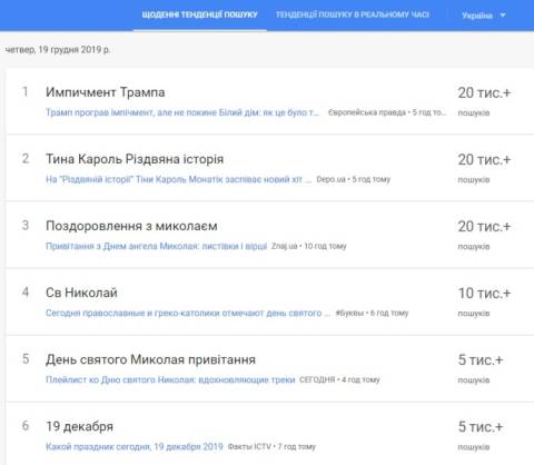 Сьогодні, 19 грудня, українці найбільше шукали у пошуковику Google інформацію, що цього дня православна церква відзначає День Святого Миколая Чудотворця.