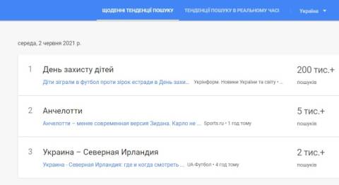 Сьогодні, 2 червня, українці найбільше шукали у пошуковику Google інформацію про те, що вчора відзначалося одне із найстаріших міжнародних свят – Міжнародний день захисту дітей, який має сталу дату святкування – 1 червня. Вона є постійною, починаючи з 1950 року, коли свято відзначалося вперше.
