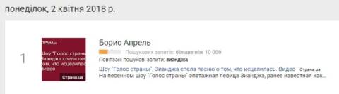 Сьогодні, 2 квітня, українці найбільше шукали у пошуковику Google інформацію про проект Голос країни-8.