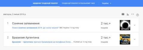 Сьогодні, 2 липня, українці найбільше шукали у пошуковику Google інформацію про сонячне затемнення.