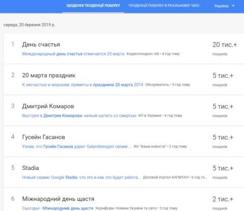 Сьогодні, 20 березня, українці найбільше шукали у пошуковику Google інформацію, що цього дня, починаючи з 2013 року, за ініціативою ООН відзначається Міжнародний день щастя.