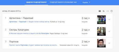 Сьогодні, 20 червня, українці найбільше шукали у пошуковику Google інформацію про відео голів та огляд матчу Аргентина – Парагвай.