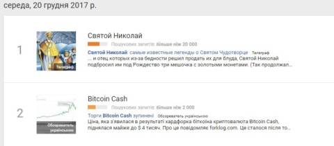 Сьогодні, 20 грудня, українці найбільше шукали у пошуковику Googe інформацію, що в торги Bitcoin Cash зупинені.