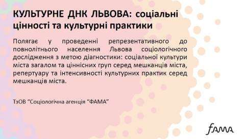 Культурне ДНК Львова: соціальні цінності та культурні практики (ТзОВ "Соціологічна агенція "ФАМА")