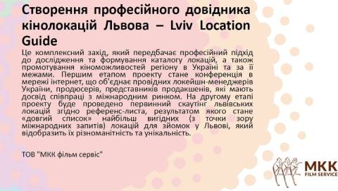 Створення професійного довідника кінолокацій Львова – Lviv Location Guide (ТОВ "МКК фільм сервіс")