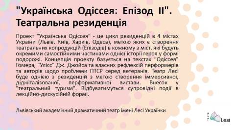 "Українська Одіссея: Епізод ІІ". Театральна резиденція (Львівський академічний драматичний театр імені Лесі Українки)