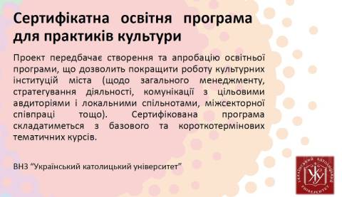 Сертифікатна освітня програма для практиків культури (ВНЗ "Український католицький університет")