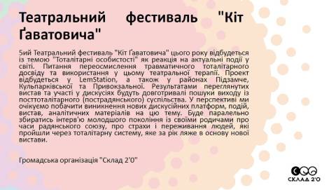 Театральний фестиваль "Кіт Ґаватовича" (ГО "Склад 2'0")