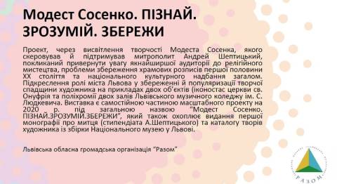 Модест Сосенко. Пізнай. Зрозумій. Збережи (Львівська обласна громадська організація "Разом")