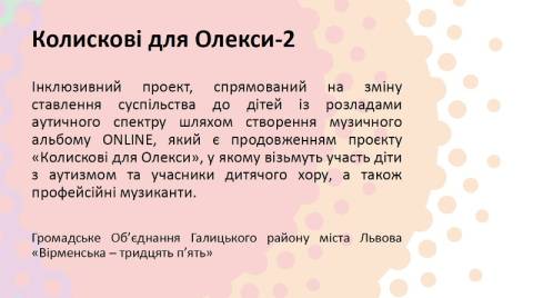 Колискові для Олекси-2 (Громадське Об'єднання Галицького району міста Львова "Вірменська – тридцять п’ять").