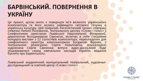 Барвінський. Повернення в Україну (Львівський академічний муніципальний театральний, художньо-дослідницький та освітній центр "Слово і голос")
