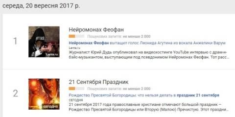 Сьогодні, 20 вересня, українці найбільше шукали у пошуковику Google інформацію, що у четвер, 21 вересня, православні християни святкують Різдво Пресвятої Богородиці.