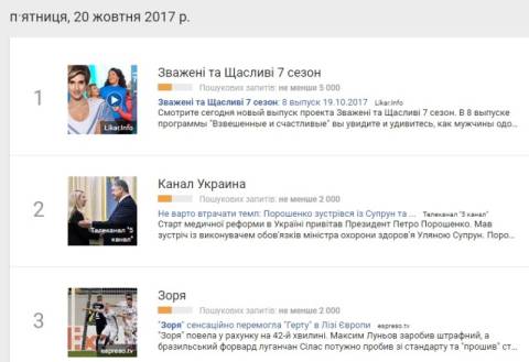 Сьогодні, 20 жовтня, українці найбільше шукали у пошуковику Google інформацію, що президент Петро Порошенко привітав старт медичної реформи в Україні. Натомість в.о. міністра охорони здоров'я Уляна Супрун зазначила, що поява національної страхової системи дозволить знищити корупцію у медзакладах.