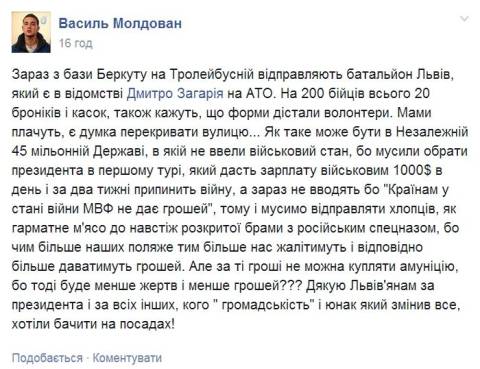 Про це у Facebook-спільноті "Львівська політика" написав громадський діяч Василь Молдаван.