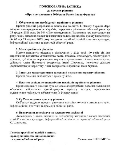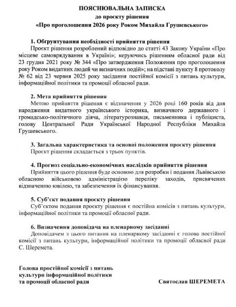 Зокрема, як йдеться у документі, облрада вирішила проголосити на Львівщині 2026 рік роком цих постатей з нагоди відзначення у 2026 році: