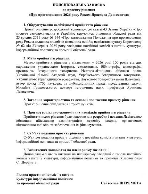 Комісія з питань культури, інформаційної політики та промоції облради 21 липня цього року зареєструвала на сайті Львівської обласної ради проєкти рішення про проголошення 2026 року роком Ярослава Дашкевича, Михайла Грушевського та Івана Франка.